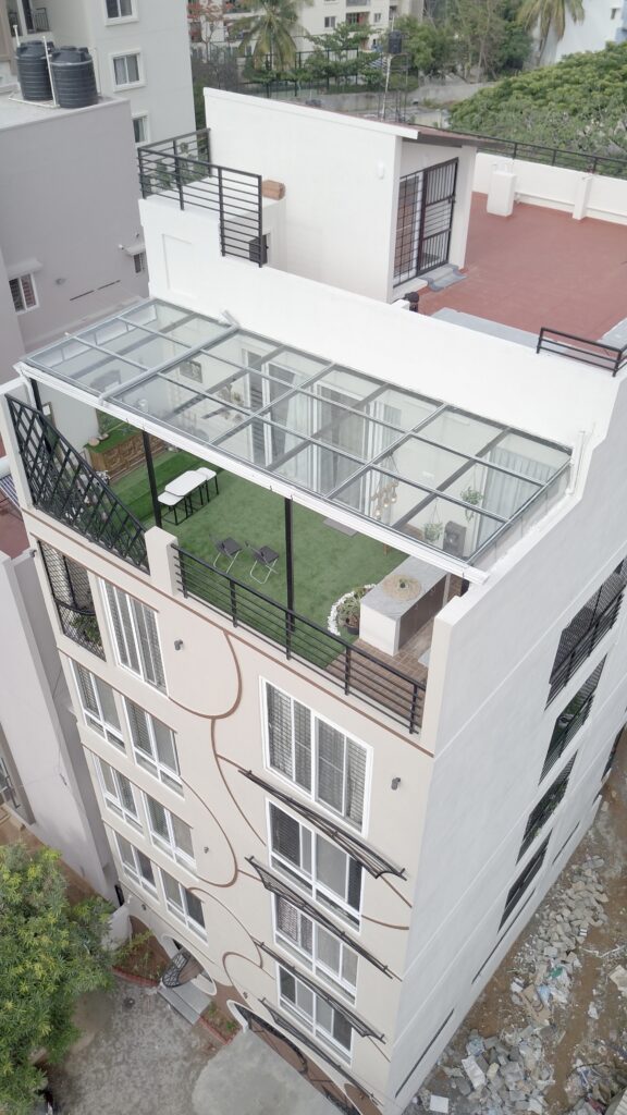 The convenience of ground-level car parking ensures that residents and guests never have to worry about parking spaces. 30×40 site located in the heart of a sought-after neighborhood Mango Garden, Kanakapura Road. This unique property features not one, but four thoughtfully designed units, including two 2-bedroom, 2-bathroom units, and an exquisite triplex unit occupying the top floors – perfect for the owner or as a premium living.
