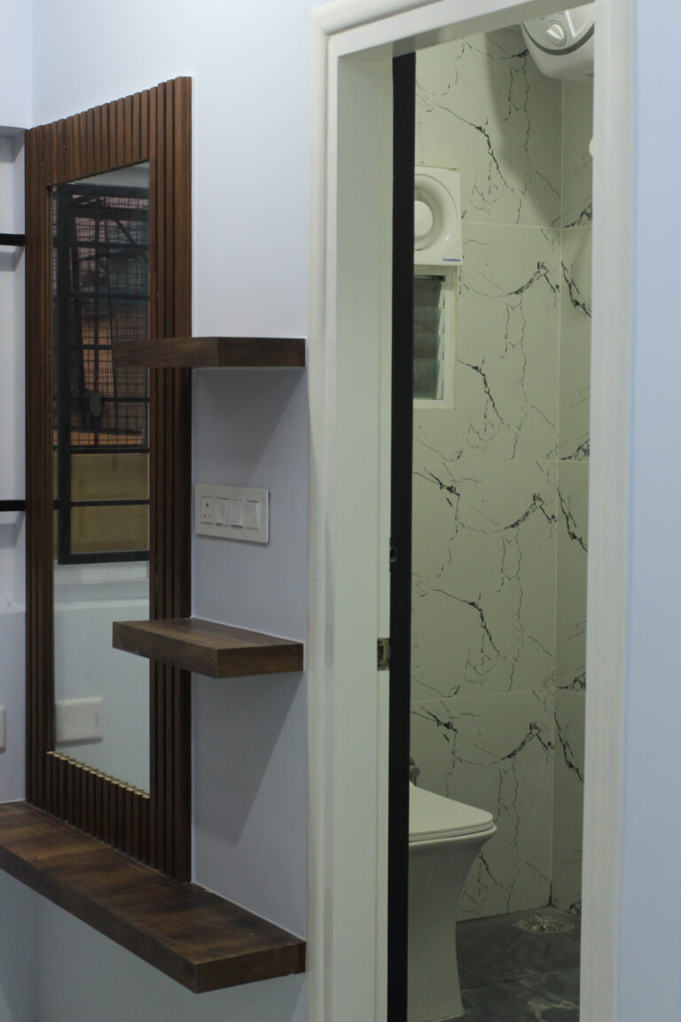 For the duplex a massive skylight lighting up the dining room which it wraps worked, and the living room was provided with a lighting pocket a small balcony which received light through a shaft like arrangement which was available as per site condition.