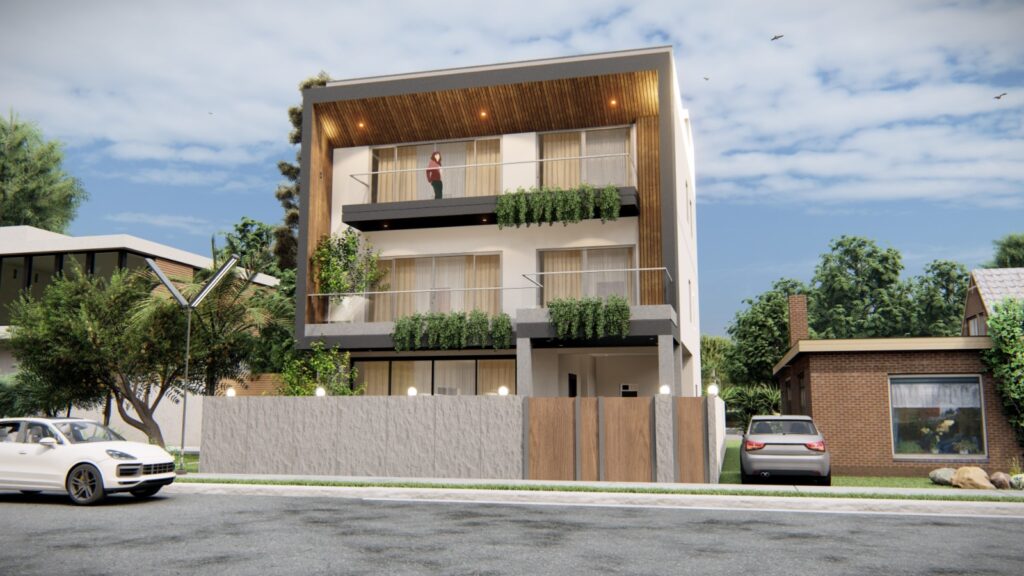 The client also requested balconies for enjoying her tea, which required thoughtful railing design. Glass railings were chosen to maintain the minimalist vision of the facade, adding an element of infinity and seamless connection to the surroundings. This choice not only preserves the clean lines and elegance of the design but also enhances the overall experience of openness and tranquility.